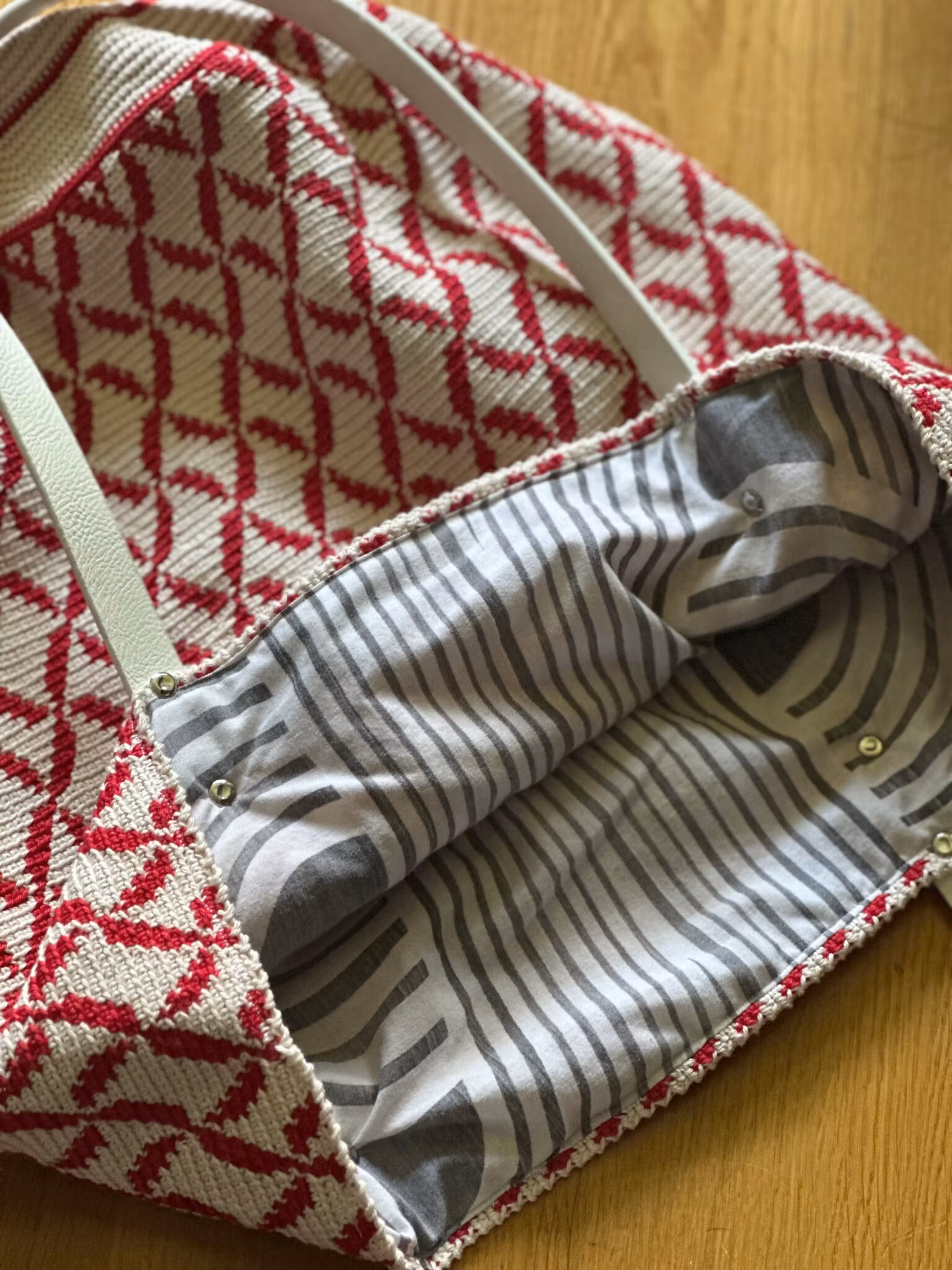 Stor, handvirkad väska i bohemisk stil – perfekt för både vardag och strand. Tillverkad med kärlek i hållbart garn, vilket gör varje exemplar unikt. Väskan har generöst utrymme för allt du behöver under dagen, och dess mjuka men slitstarka struktur ger både komfort och stil. Ett charmigt hantverk som kombinerar funktionalitet med personlig design.